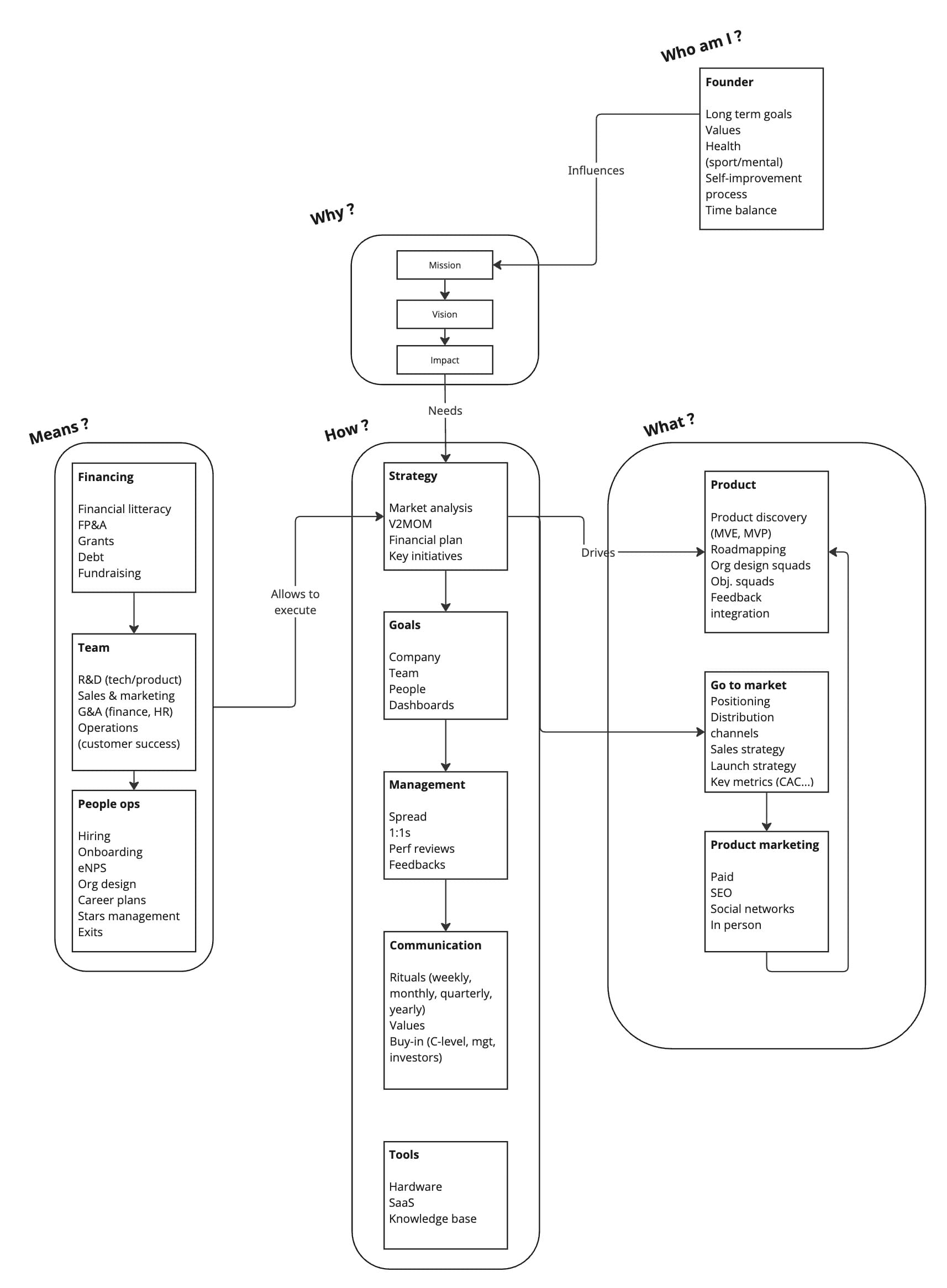 - Le "comment" : c'est comment on s'organise pour décliner le "pourquoi" en actions concrÚtes. Concevoir sa stratégie d'entreprise, piloter par les objectifs, manager (combien d'entrepreneurs ne le font pas !), communiquer...