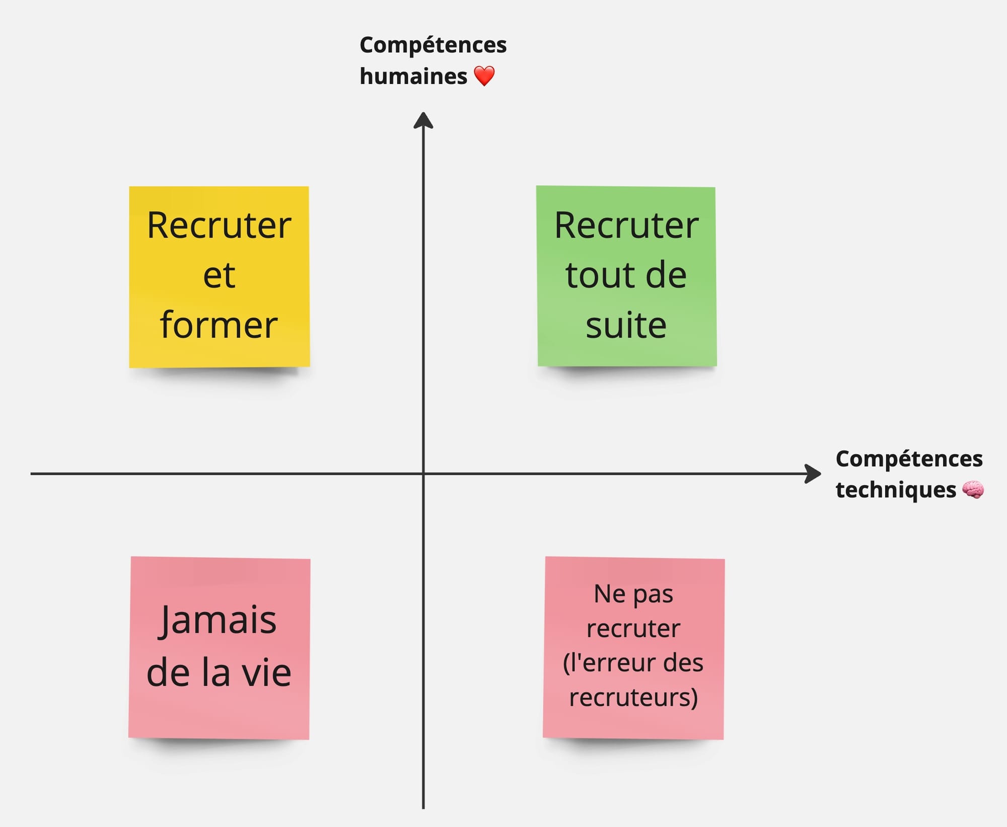 - Celles qui ont les compétences techniques mais pas humaines. Et la voilà l'erreur. On privilégie quelqu'un qui a l'air compétent, qui l'est... mais sur le plan technique. La personne est impressionnante, elle délivre de suite, elle délivre vite. Le problème n'apparaît pas de suite, mais au bout de quelques mois... la relation avec la personne devient compliquée, elle prend une position de "star" intouchable. Il est très dangereux de se trouver dans cette situation. ☠️