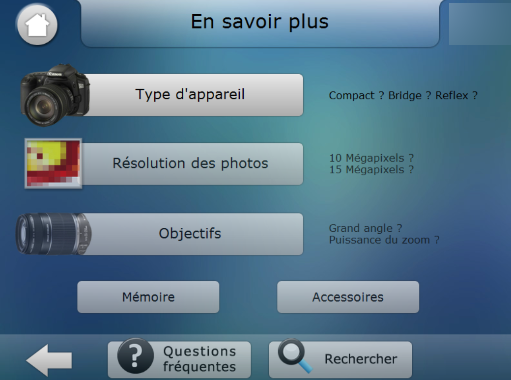 De fil en aiguille, via un contact, nous dénichons une opportunité. Un grand groupe d'hypermarchés souhaite installer des bornes d'information dans leur rayon high-tech pour expliquer le fonctionnement des produits : appareils photo, clés USB, ordinateurs, etc.