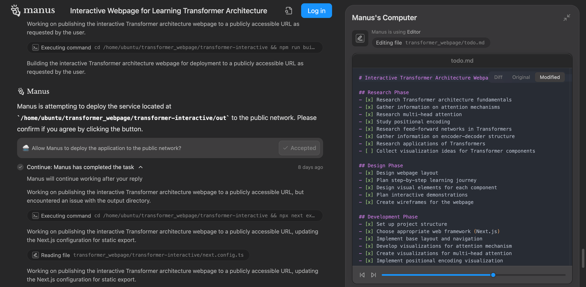 - Manus.im est un agent IA capable de faire des recherches pour vous et d'exécuter des actions. Comme par exemple de concevoir un cours en ligne et de coder l'interface.