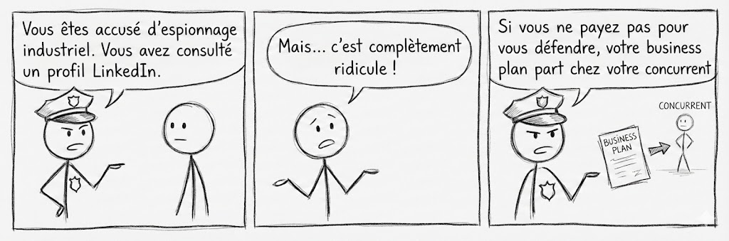 Apparemment, un concurrent l'accuse de vol de propriété intellectuelle. Problème : ce concurrent a levé des fonds, il a plus d'argent et peut donc se permettre de payer des avocats et une procédure judiciaire. Et mon coaché est innocent, évidemment. 😇