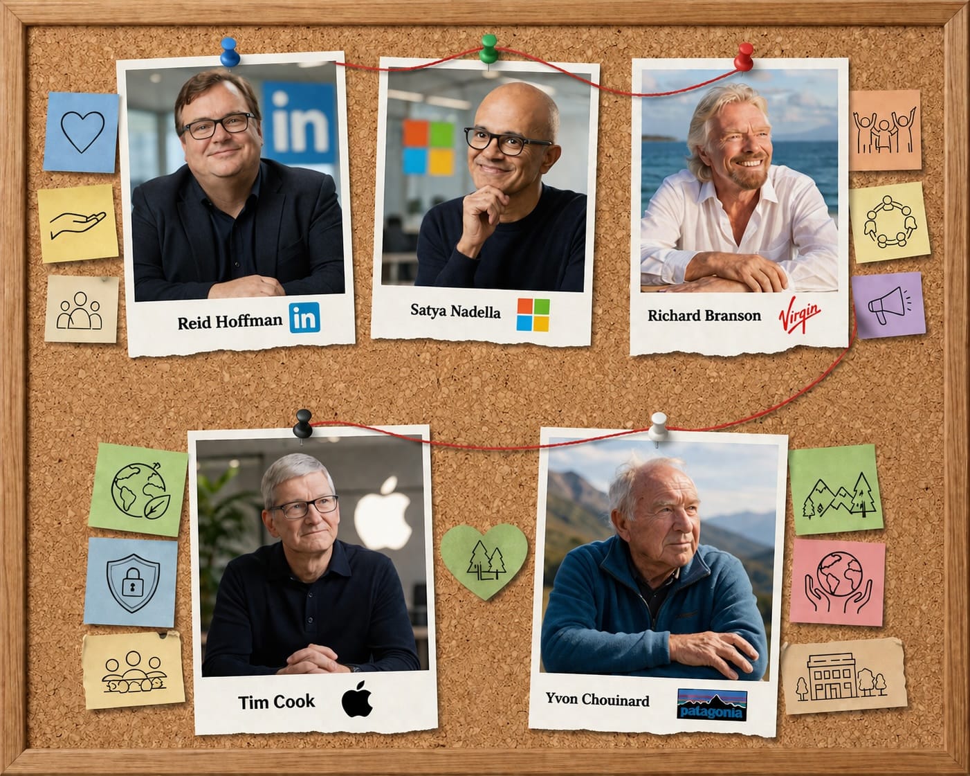 - Tim Cook (Apple) connu pour ses principes éthiques solides, a rendu Apple plus socialement consciente sur la durabilité et la vie privée.