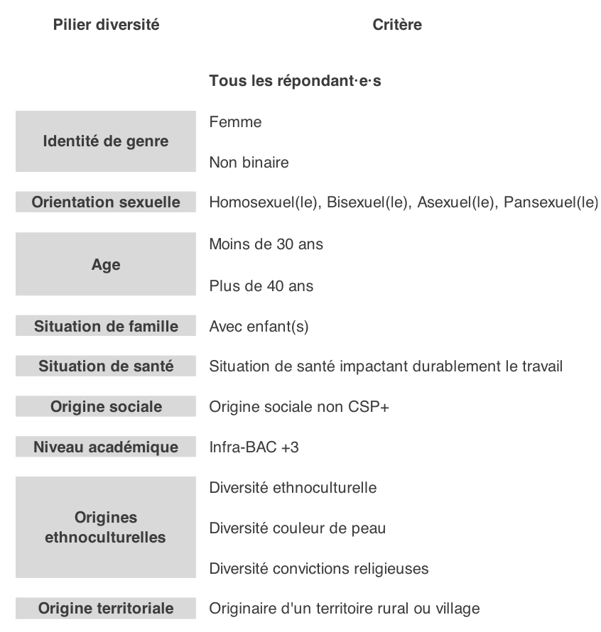 Pour vous donner une idée, voici les critères de diversité qui ont été analysés :